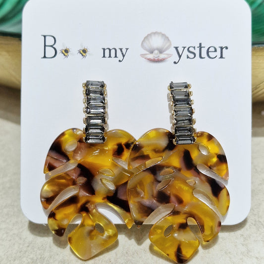 Amber Tortoise Shell Acrylic Palm Leaves Pierced Fashion Earrings