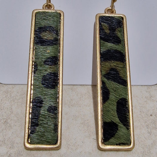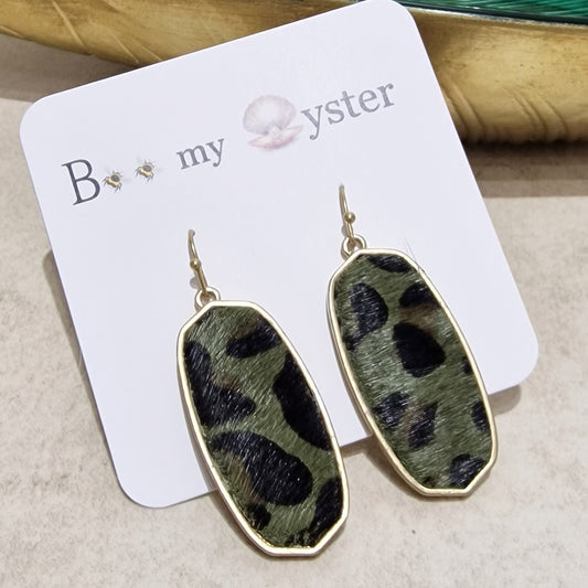 Olive Green Leopard Print Pierced Drop Oblong Fashion Earrings