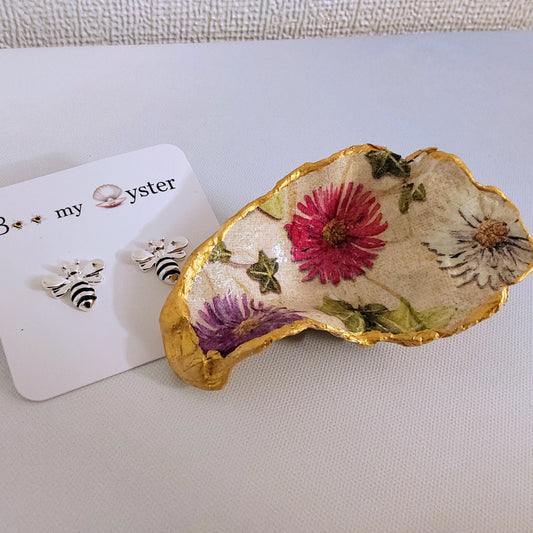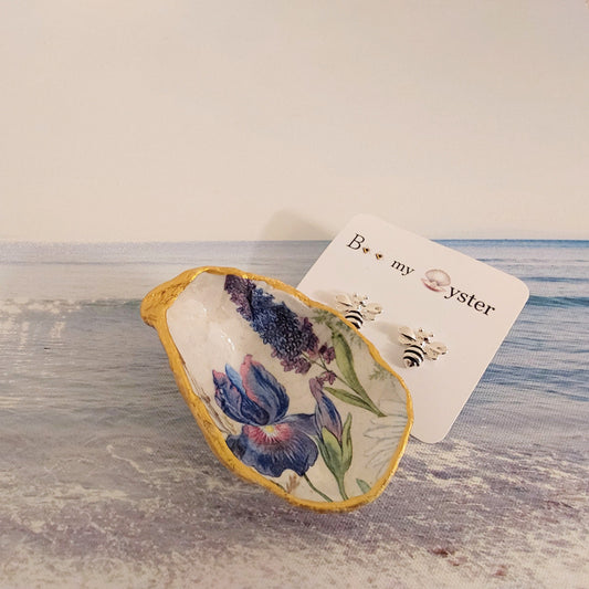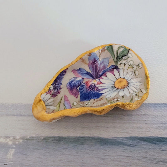 Iris Daisy Spring Flower Special Oyster Shell Trinket Dish
