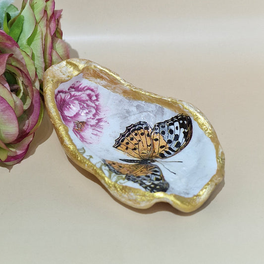 Daisy Butterfly Flower Special Oyster Shell Trinket Dish