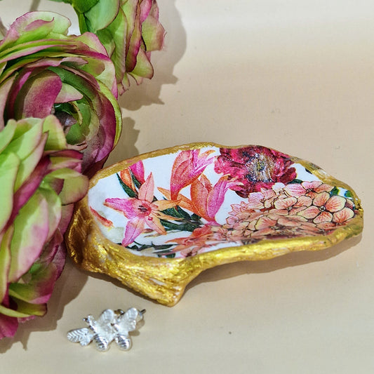 Pink Cornflowers Oyster Shell Trinket Dish