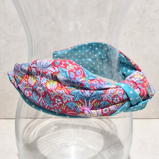 Liberty of London Hairband Strawberry Thief Tana Lawn Red Cotton Fabric Top Knot Headband