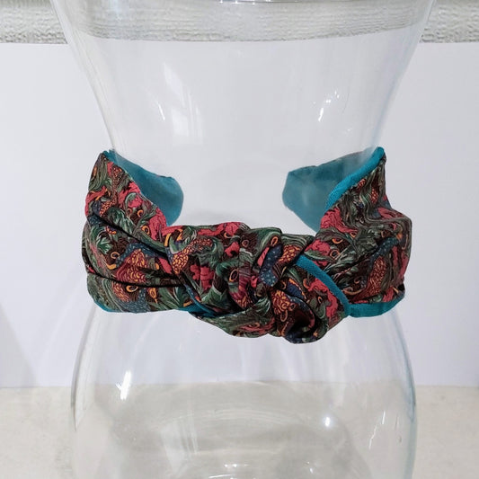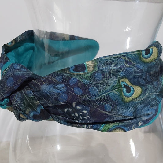 Hairband Liberty of London Peacock Feather Cotton Fabric Bespoke Top Knot Headband