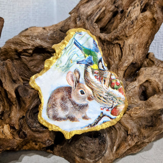 Snow Bunny Woodland Animals Decorated Oyster Shell