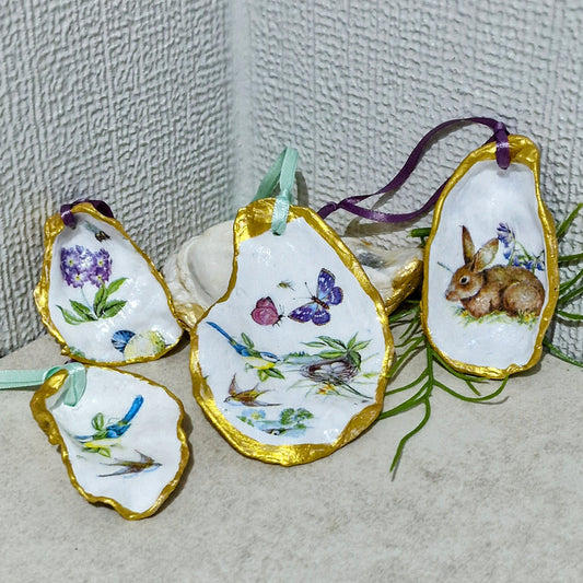 Spring Oyster Shell Hanging Ornaments Decorations Gift Easter Tree - Set of 4