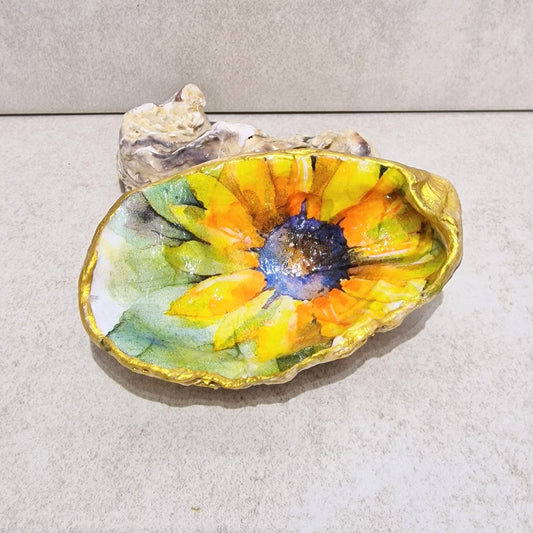 Sunflower Art Large Oyster Shell Trinket Dish