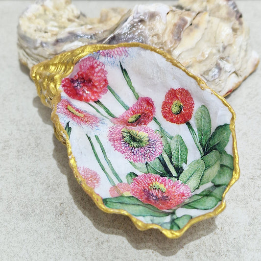 Pink Cornflowers Oyster Shell Trinket Dish