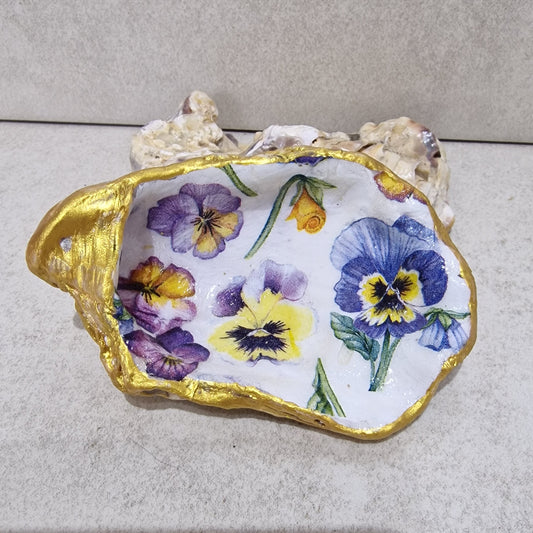 Pretty Pansies Oyster Shell Trinket Dish
