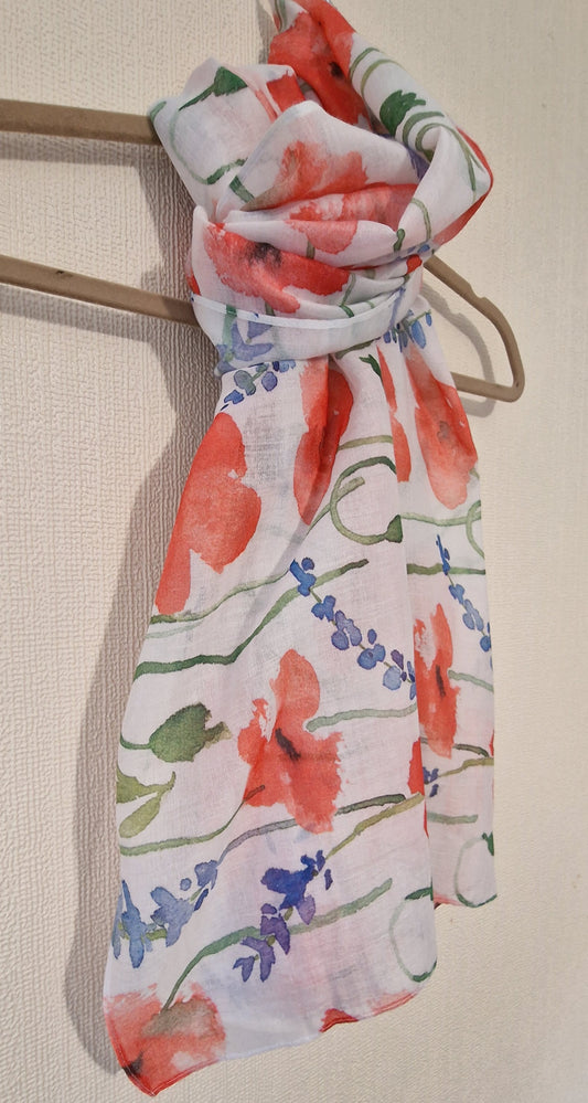 Watercolour Poppy Flower Scarf Wrap Shawl 100% Polyester Gift New