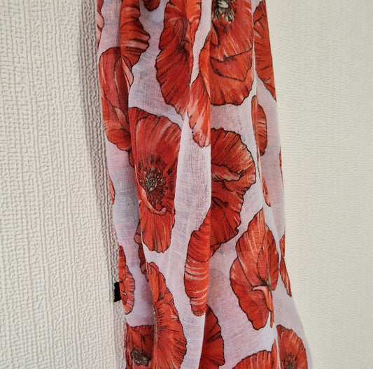 Colourful Red Poppy Flower Scarf Wrap Shawl 100% Polyester Gift New