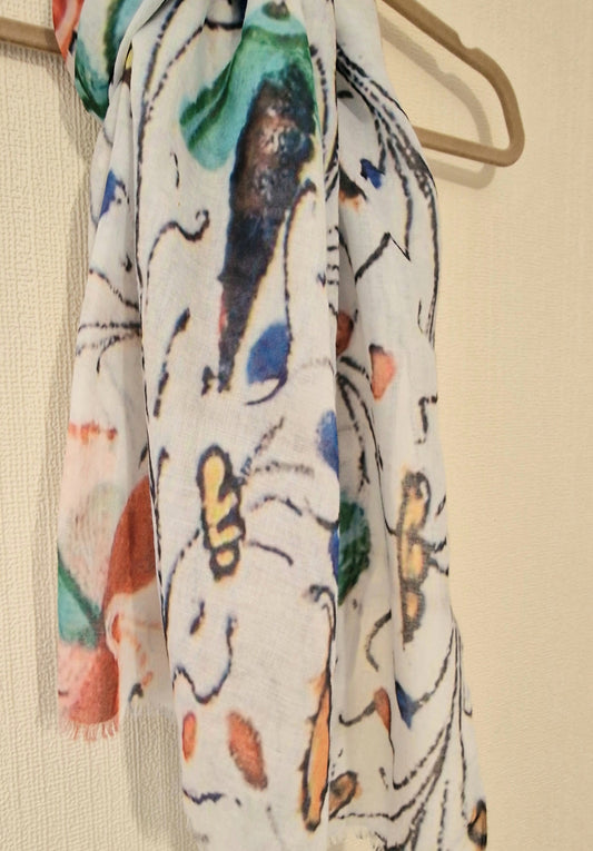 Watercolour Red Poppy Flower Butterfly Scarf Wrap Shawl Polyester