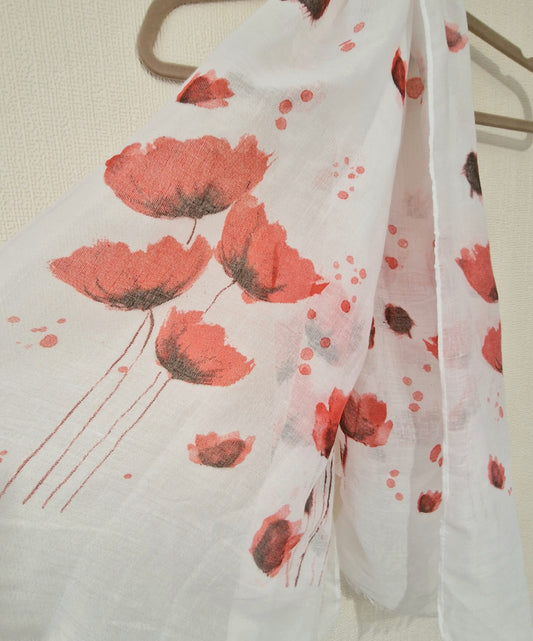 Watercolour Red Poppy Flower Scarf Wrap Shawl Viscose Polyester
