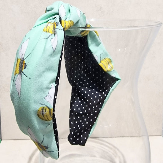 Hairband Mint Bumble Bee Cotton Fabric Bespoke Top Knot Headband