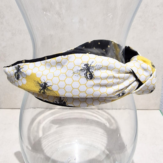Hairband Bumble Bee Honeycomb Cotton Fabric Bespoke Top Knot Headband