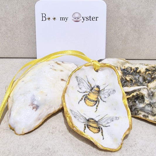 Bumble Bee Duo Oyster Shell Ornament Decoration 7cm