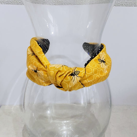 Hairband Yellow Bee Honeycomb Cotton Fabric Bespoke Top Knot Headband