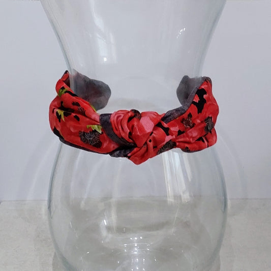 Hairband Summer Red Flowers Cotton Fabric Bespoke Top Knot Headband