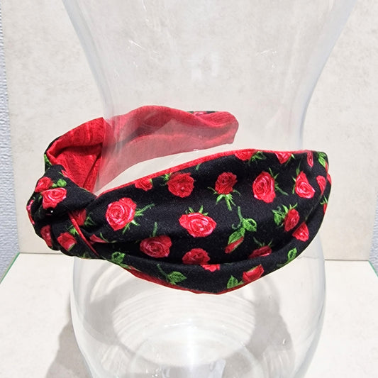 Hairband Red Roses Cotton Fabric Bespoke Top Knot Headband