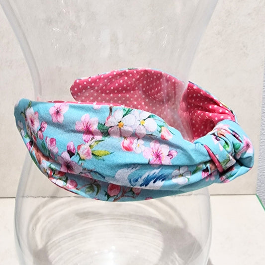 Hairband Cherry Blossom Heron Cotton Fabric Bespoke Top Knot Headband