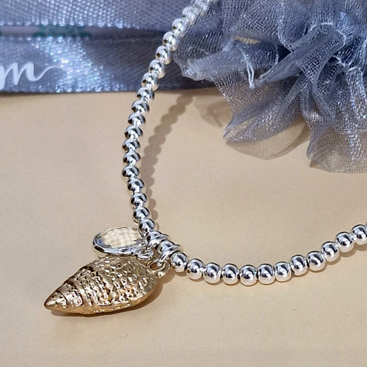Delicate Shell & Crystal Stretch Charm Bracelet