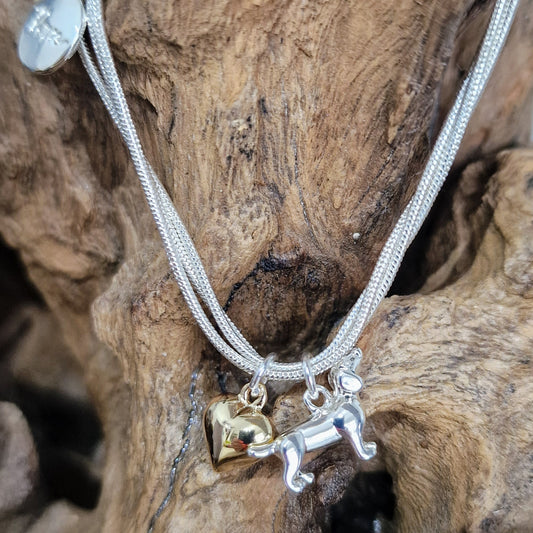 Chain Charm Bracelet with Gold Silver Plated Heart Dachshund by POM