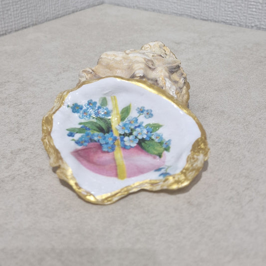NEW Forget me Nots Easter Egg Oyster Shell Trinket Dish Jewellery Holder Gift