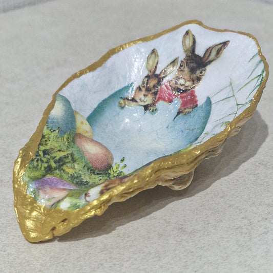 NEW Easter Bunny Bunnies Egg Oyster Shell Trinket Dish Jewellery Holder Gift