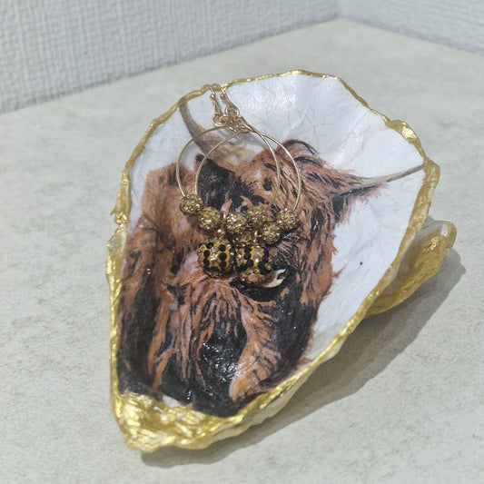 NEW Highland Cow Scotland Oyster Shell Trinket Dish Jewellery Holder Gift