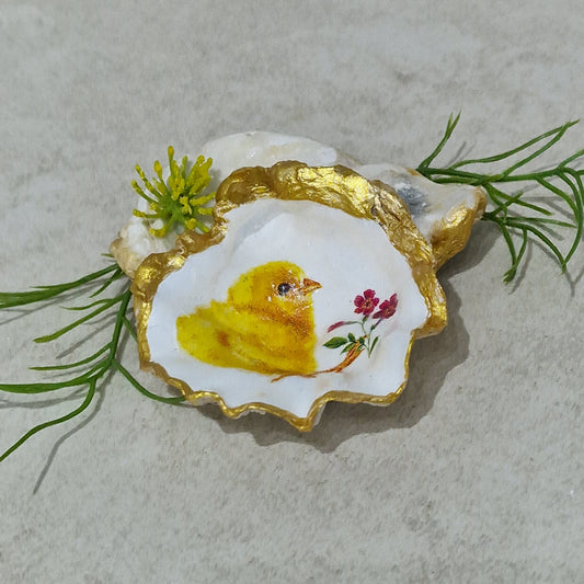 Yellow Easter Chick Oyster Shell Trinket Dish Gift Jewellery Holder