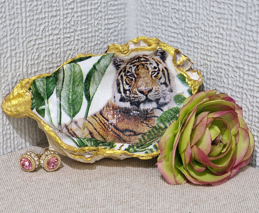 Tiger Safari Animals Oyster Shell Trinket Dish Gift Jewellery